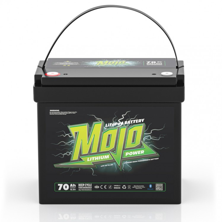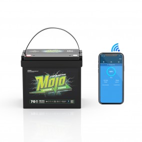 Mojo Lithium Power-batterier tillverkas av Meritech Power Solutions. I serien finns batterier med kapacitet 12V 70A, 12V 100A samt 24V 50A, samtliga med Blåtandsövervakning.